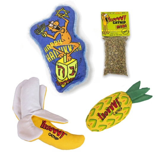 Yeowww Dreidel Krinkle Hanukkah Holiday Gift Bundle with 3 Catnip Cat Toys + Bonus Catnip