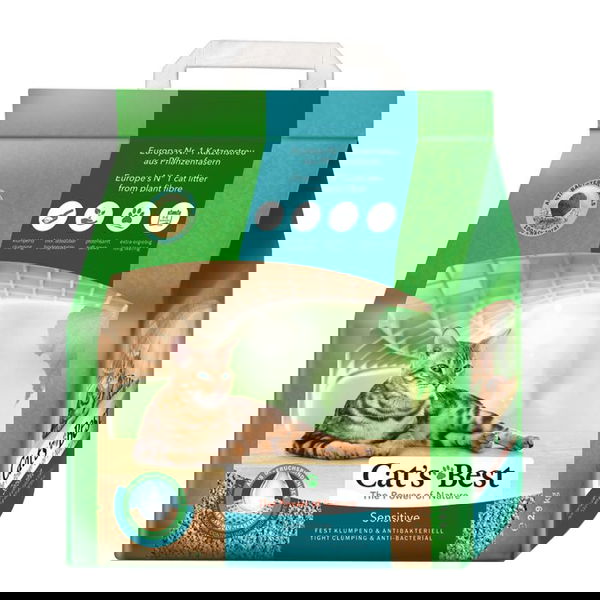 Cat’s Best Sensitive is a 100% organic and antibacterial clumping litter for cats.