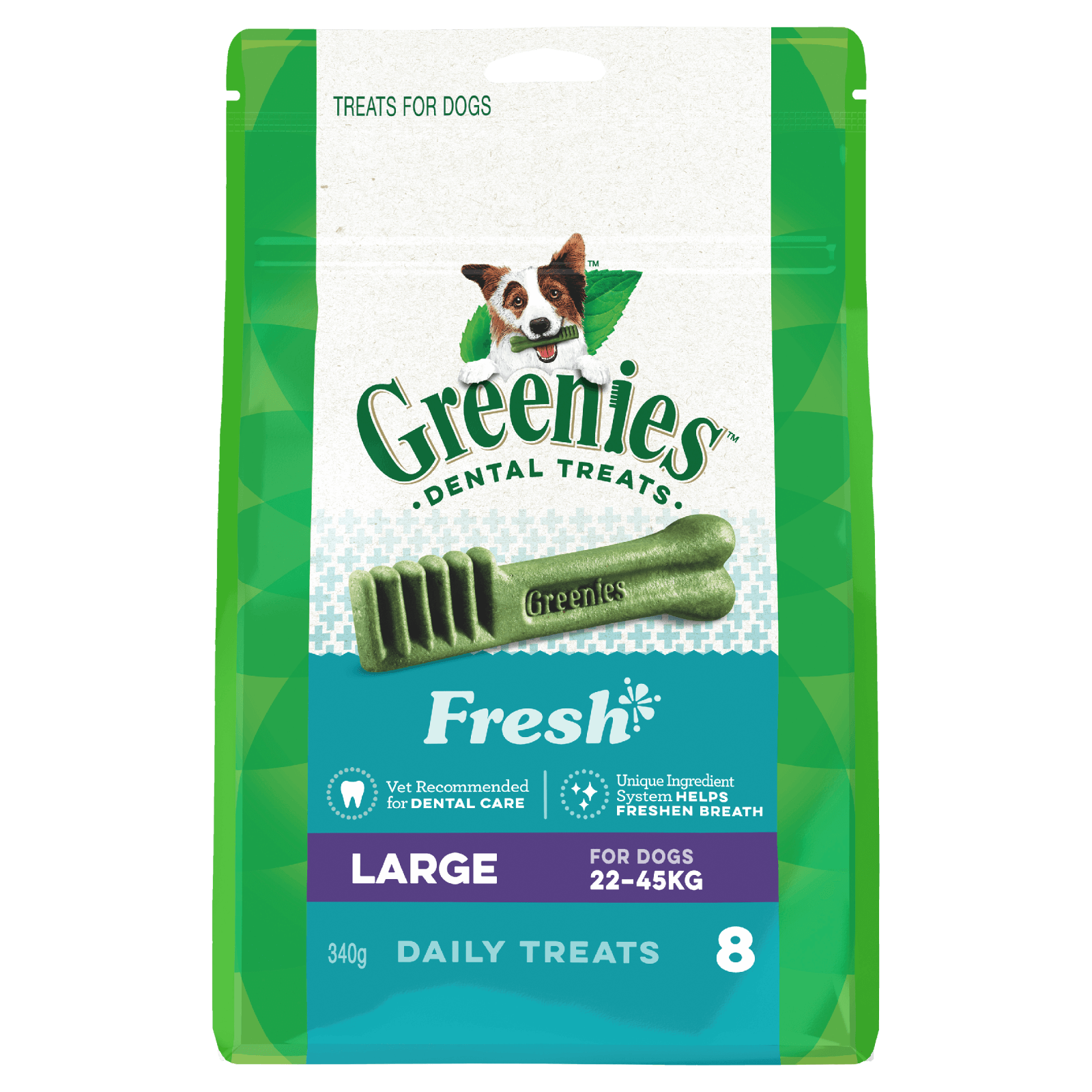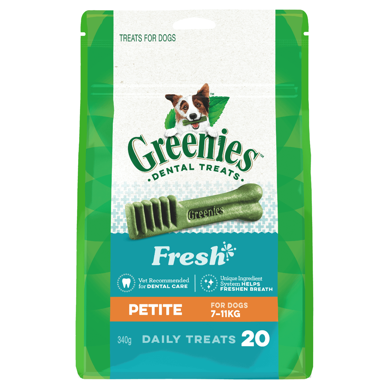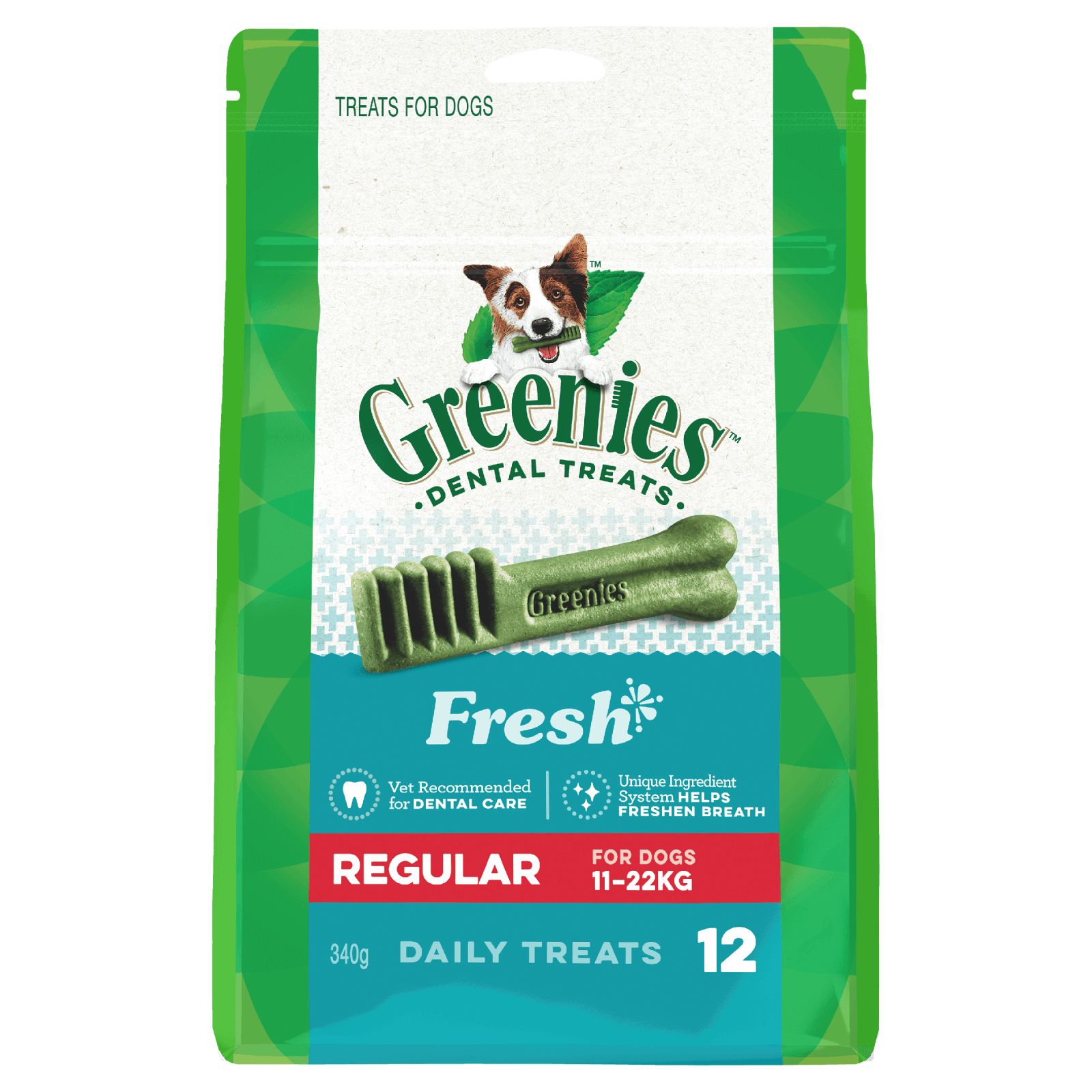 One GREENIES™ Fresh Dental Treat is all it takes for clean teeth, fresh breath, and a happy dog. Y