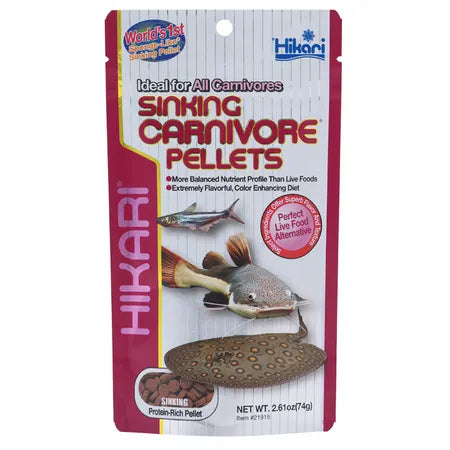 Satisfy the carnivorous appetite of your aquatic pets with Hikari Sinking Carnivore Pellets, specifically formulated to provide a nutrient-rich diet for cats, sharks, eels, bichirs, and stingrays. This premium food delivers superior quality backed by over a century of research and expertise in ornamental fish nutrition.