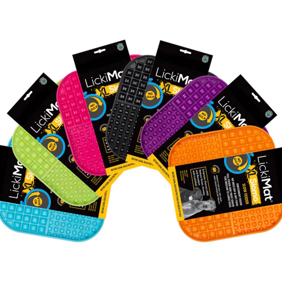 While Lickimats can aid in managing excessive licking behaviour, it's essential to consult your vet if the licking persists. Excessive licking may indicate underlying medical conditions like arthritis or allergies, requiring professional attention. Additionally, Lickimats serve as effective tools for slow-feeding, ideal for pets prone to gulping down their food too quickly, which can lead to indigestion or choking. Utilize the limited space between the textured patterns of mats like the Lickimat Buddy Tuff to sprinkle kibble, encouraging your pet to eat more slowly and improving their overall feeding experience and digestion.