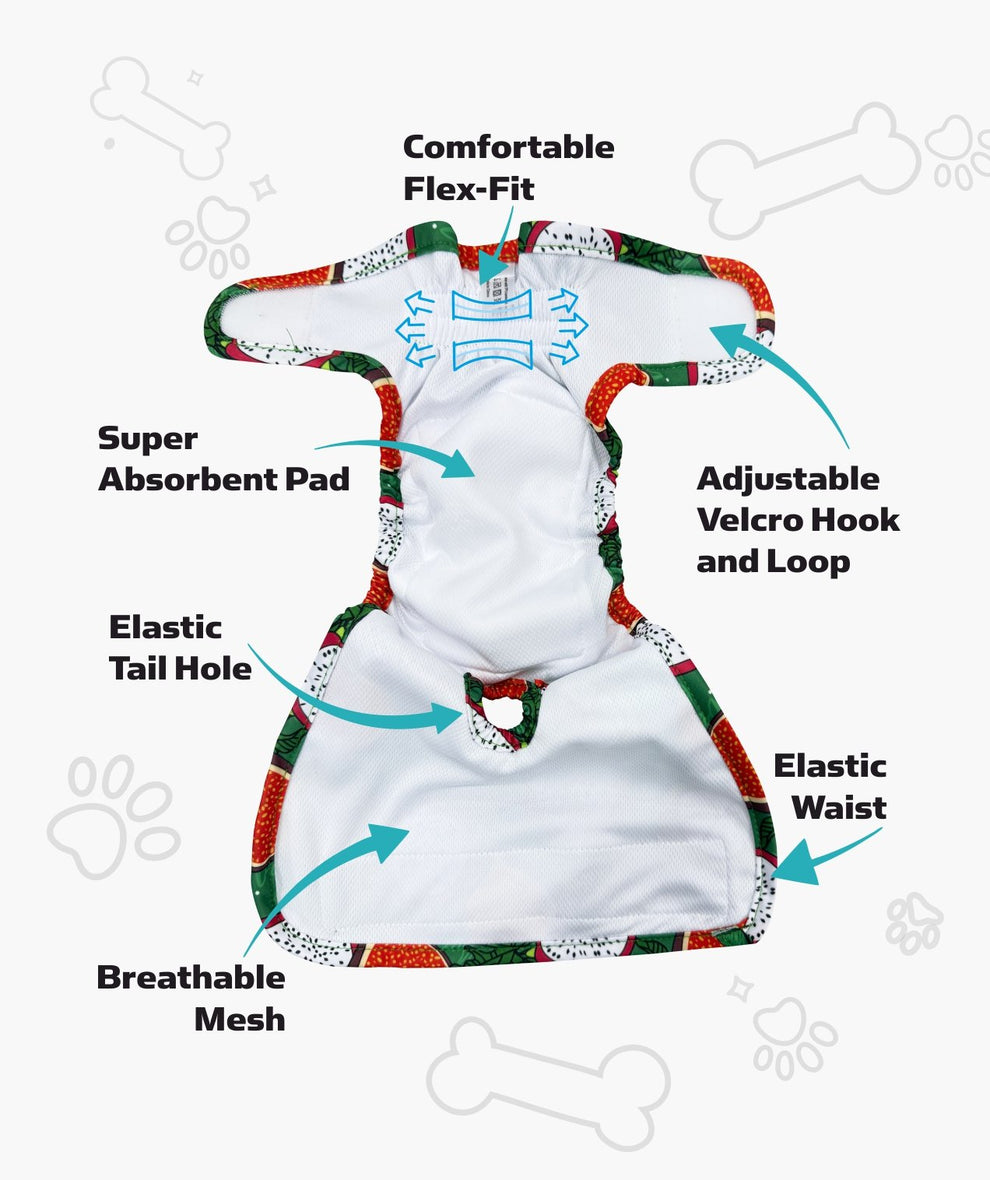 Customizable Fit: Many washable dog nappies come with adjustable straps or Velcro, allowing for a snug, secure fit that prevents leaks. This can be especially important for dogs that are restless or move around a lot.