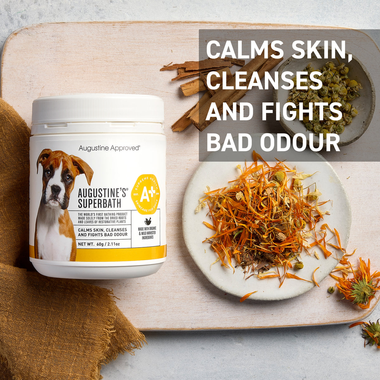 CALMS SKIN, CLEANSES & FIGHTS BAD ODOUR