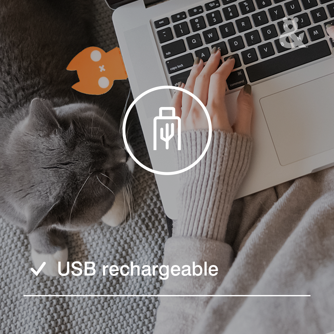 Get your kitty moving using their natural hunting instincts with Rufus & Coco's rechargeable cat laser pointer toy!
