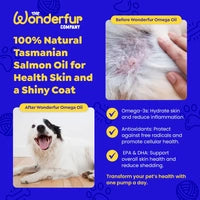 Support your pet's well-being with Wonderfur Omega Oil! Packed with Omega 3, 6, and 9 fatty acids, this all-natural salmon oil helps maintain a healthy immune system, supports skin and coat health, aids brain and eye function, and promotes joint flexibility.